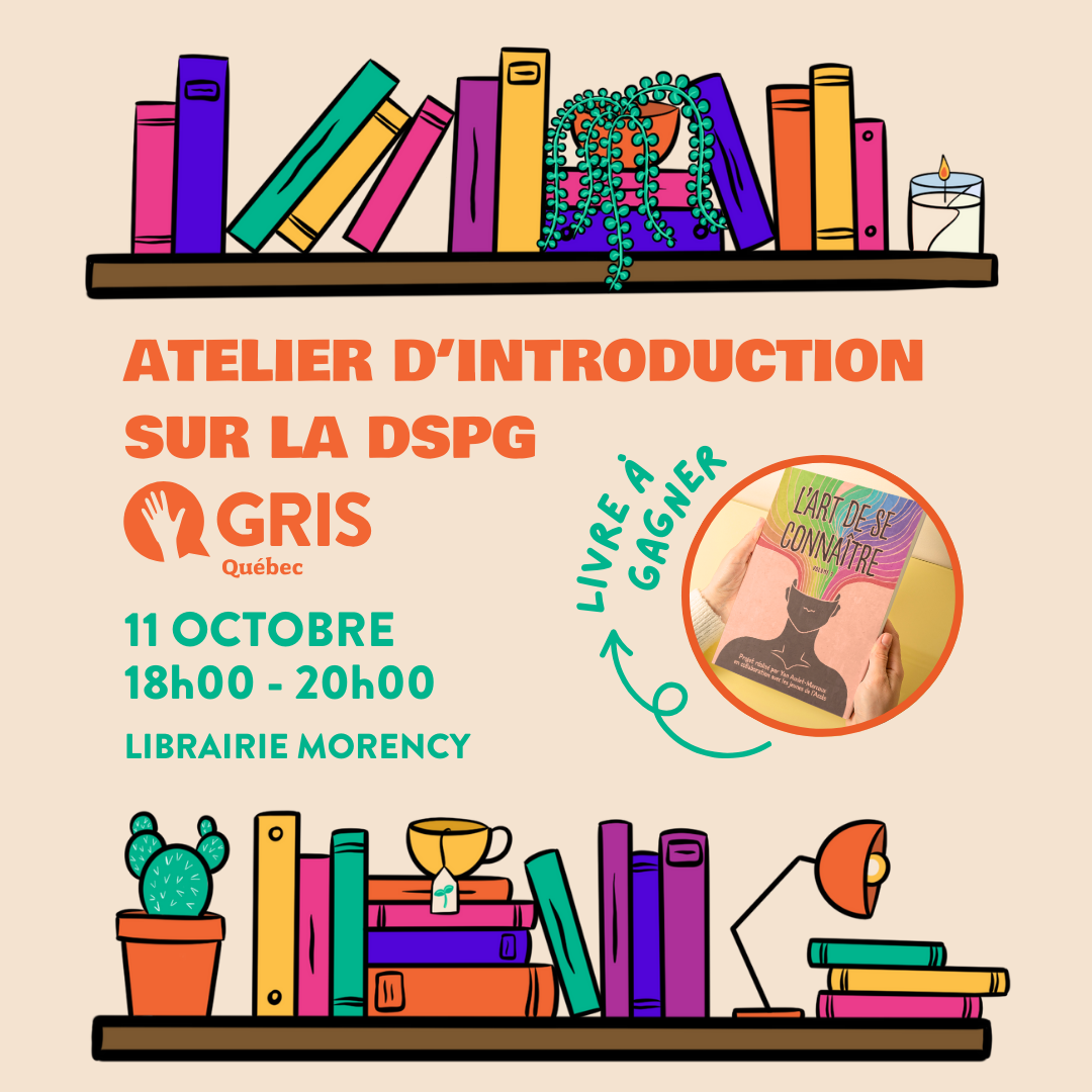 Venez en apprendre plus sur la DSPG avec un court atelier donné par Yan, intervenant et agent de liaison pour Aire Ouverte chez GRIS-Québec ainsi que créateur du projet « L’Art de se connaître ».