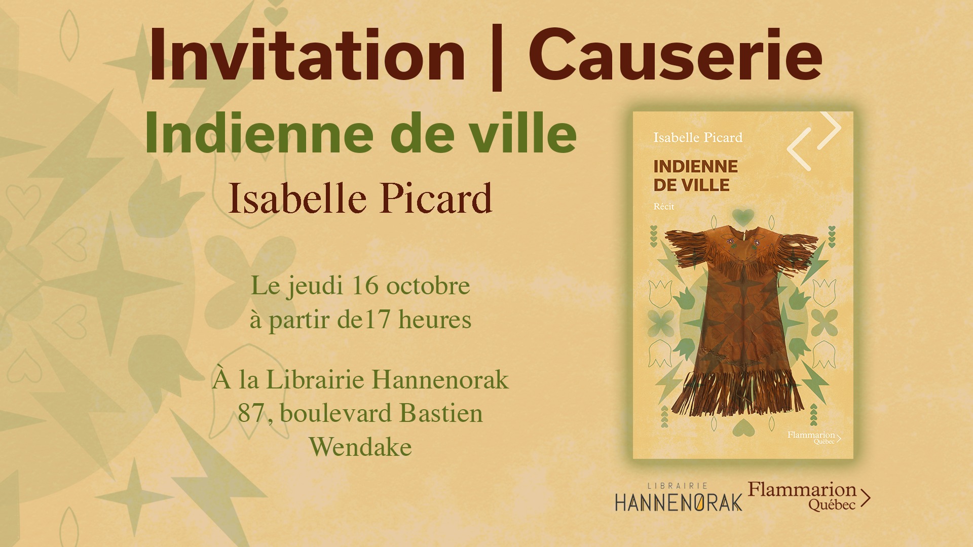 Le jeudi 16 octobre, soyez des nôtres pour une causerie avec la talentueuse Isabelle Picard dans le cadre de la sortie de son nouveau livre, Indienne de ville (Flammarion)!