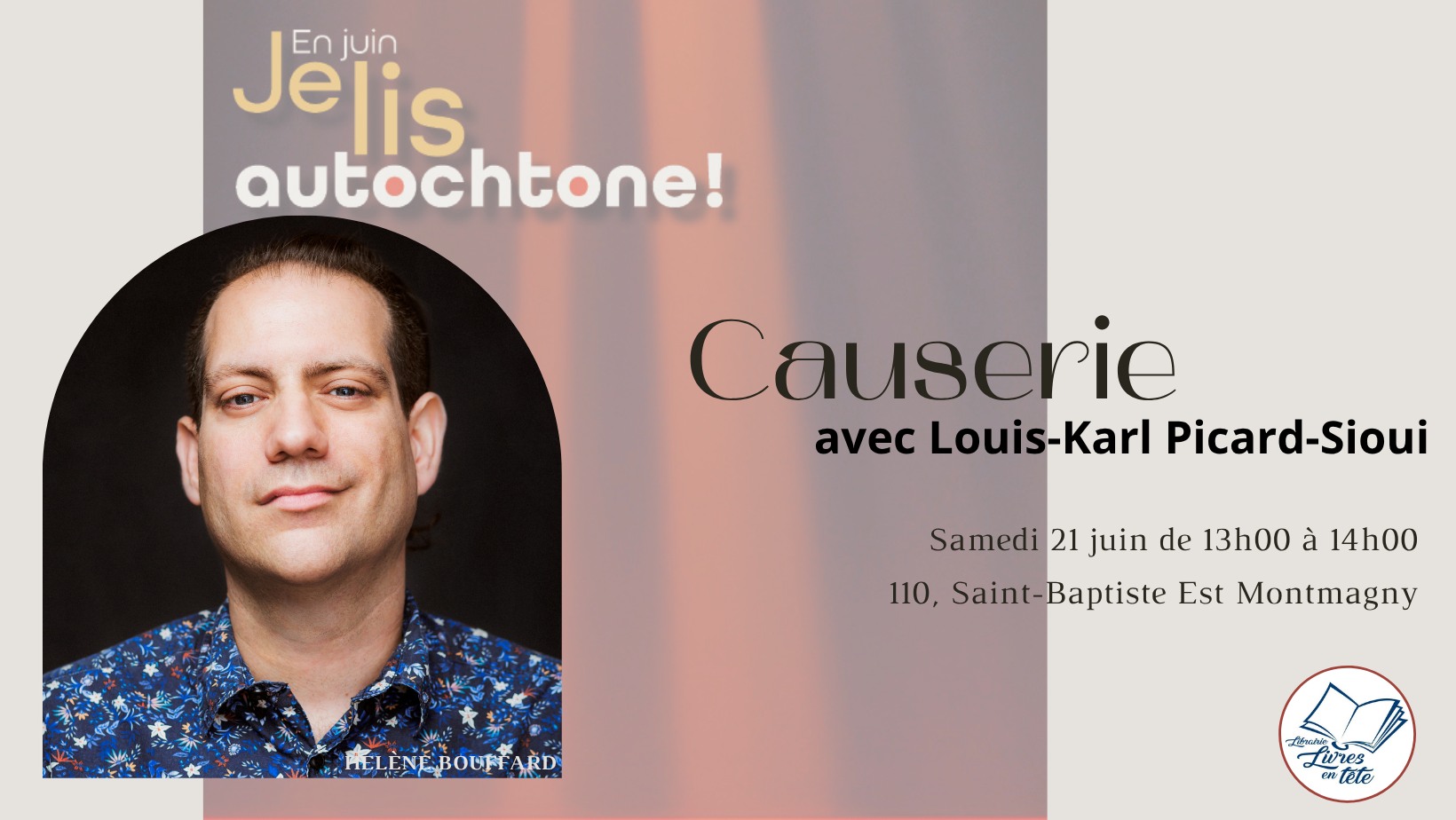 À l’occasion de la Journée nationale des peuples autochtones et dans le cadre de l’initiative En juin, je lis autochtone, vous êtes invités à venir à la rencontre l’auteur Louis-Karl Picard-Sioui.