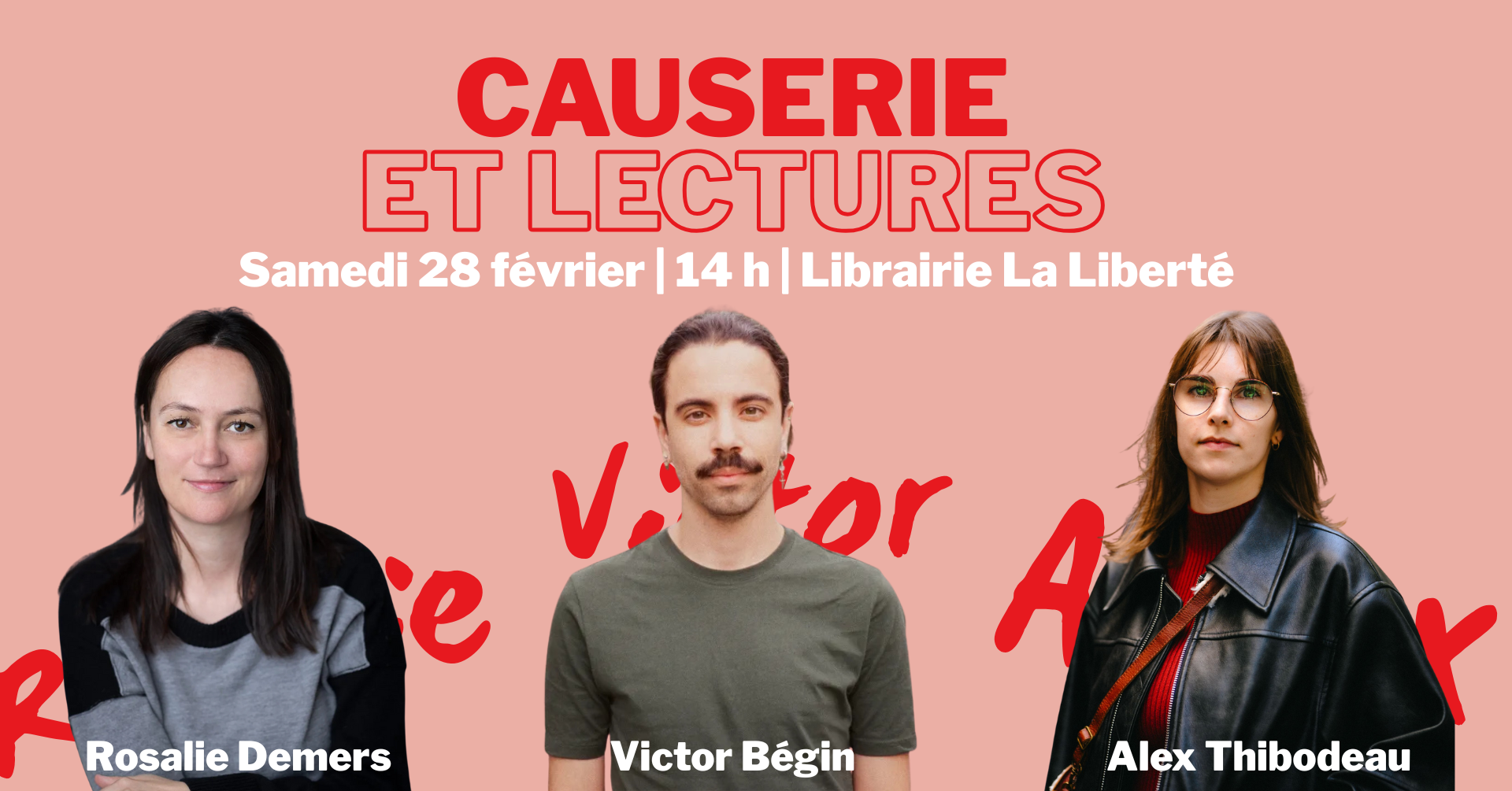 Causerie et lectures avec Rosalie Demers, Victor Bégin et Alex Thibodeau