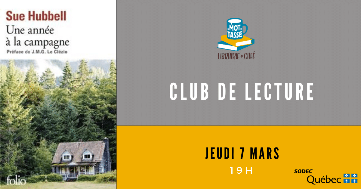 Venez discuter du livre Une année à la campagne de Sue Hubbell avec d’autres curieuses et curieux de la littérature. Il s’agit d’un livre aux saveurs poétiques qui renoue avec la nature, en passant par le bruit du vent et les douceurs du ciel de la campagne.