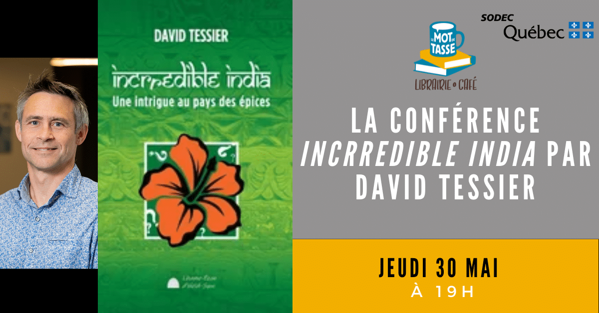 Venez assister à la conférence de David Tessier, lors de laquelle il présentera l’Inde, sa démarche artistique, son expérience d’édition et bien sûr, son roman! Gratuit.