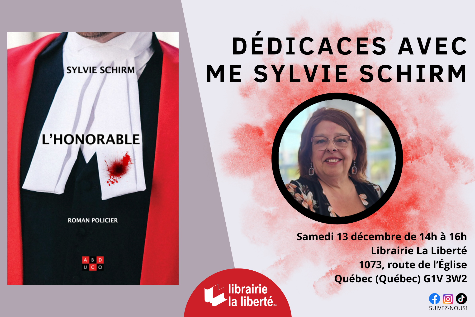 Rencontrez Maître Sylvie Schirm lors d’une séance de dédicaces pour son roman « L’Honorable » (ABDUCO).