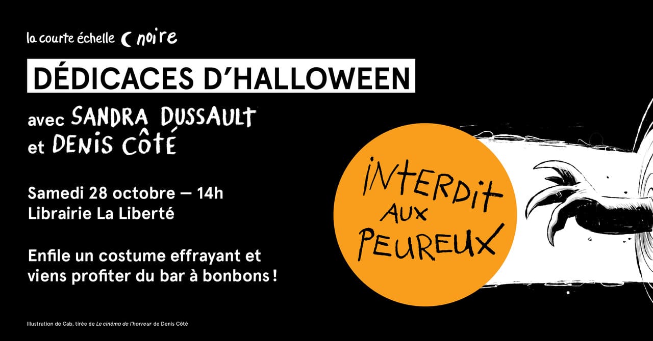 🐈⬛ Le 28 octobre à 14 h, la courte échelle vous invite à un lancement terrifiant à la librairie La Liberté. Au programme : oeuvres effrayantes, dédicaces d’Halloween et bar à bonbons!