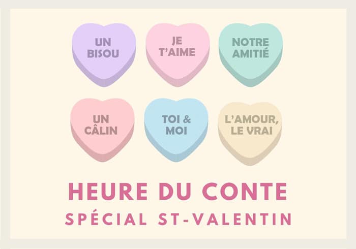 L’heure du conte portera sur les thèmes de la St-Valentin, de l’amour et de l’amitié.