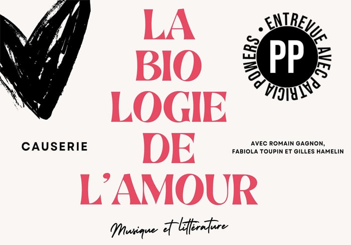 Le dimanche 18 février à 13h à la succursale de Shawinigan, Patricia Powers reçoit l’auteur Romain Gagnon lors d’une causerie sur le thème de l’amour, agrémentée de musique et de chansons interprétées par Fabiola Toupin et Gilles Hamelin au piano.