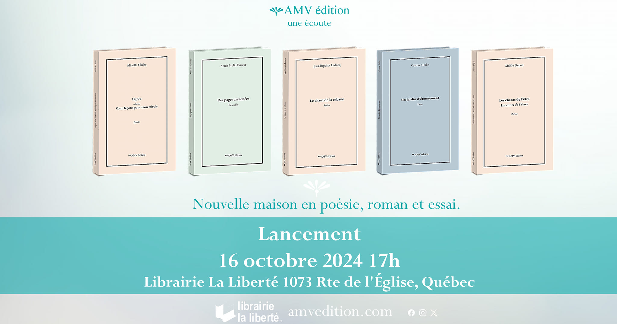 📖 AMV édition, nouvelle maison en poésie, roman et essai, vous invite à son lancement, en présence de l’éditrice et des écrivain.e.s!