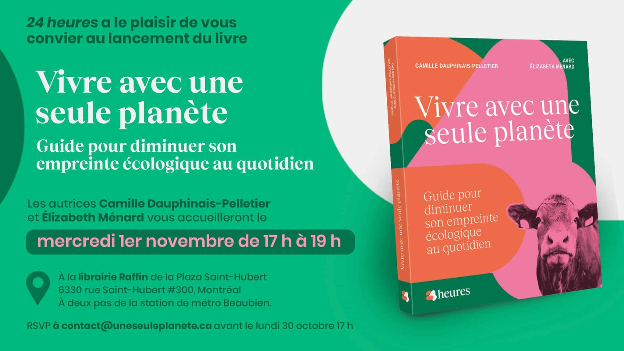 24 heures vous convie au lancement du livre Vivre avec une seule planète – Guide pour diminuer son empreinte écologique au quotidien, en formule 5 à 7.