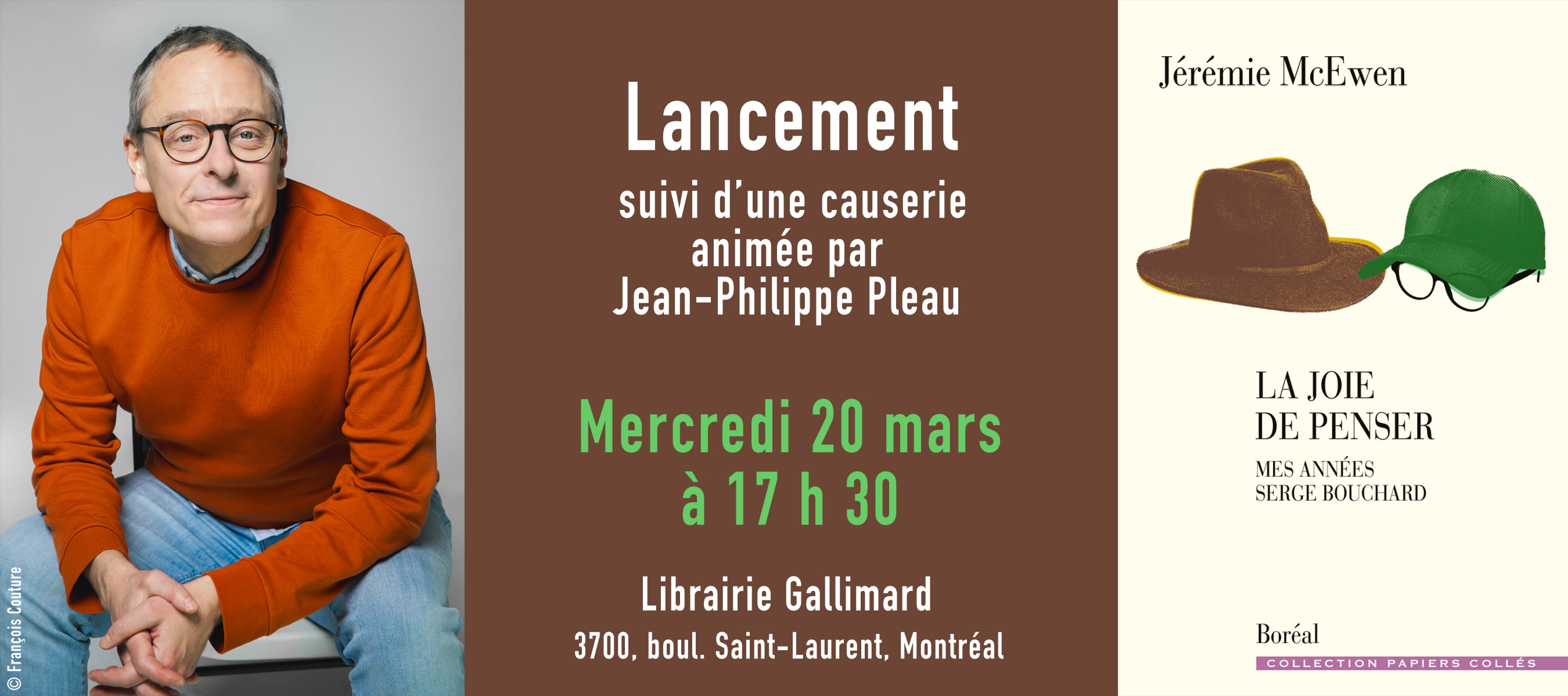 La soirée sera accompagnée d’une causerie animée par Jean-Philippe Pleau. Les chroniques réunies dans ce recueil ont été rédigées de 2017 à 2021 pour C’est fou…, émission radiophonique de Radio-Canada animée par Serge Bouchard et Jean-Philippe Pleau. Elles côtoient trois textes inédits dans lesquels Jérémie McEwen rend hommage à son ami Serge et évoque les multiples facettes de leur collaboration, que la mort aura interrompue après seulement sept ans