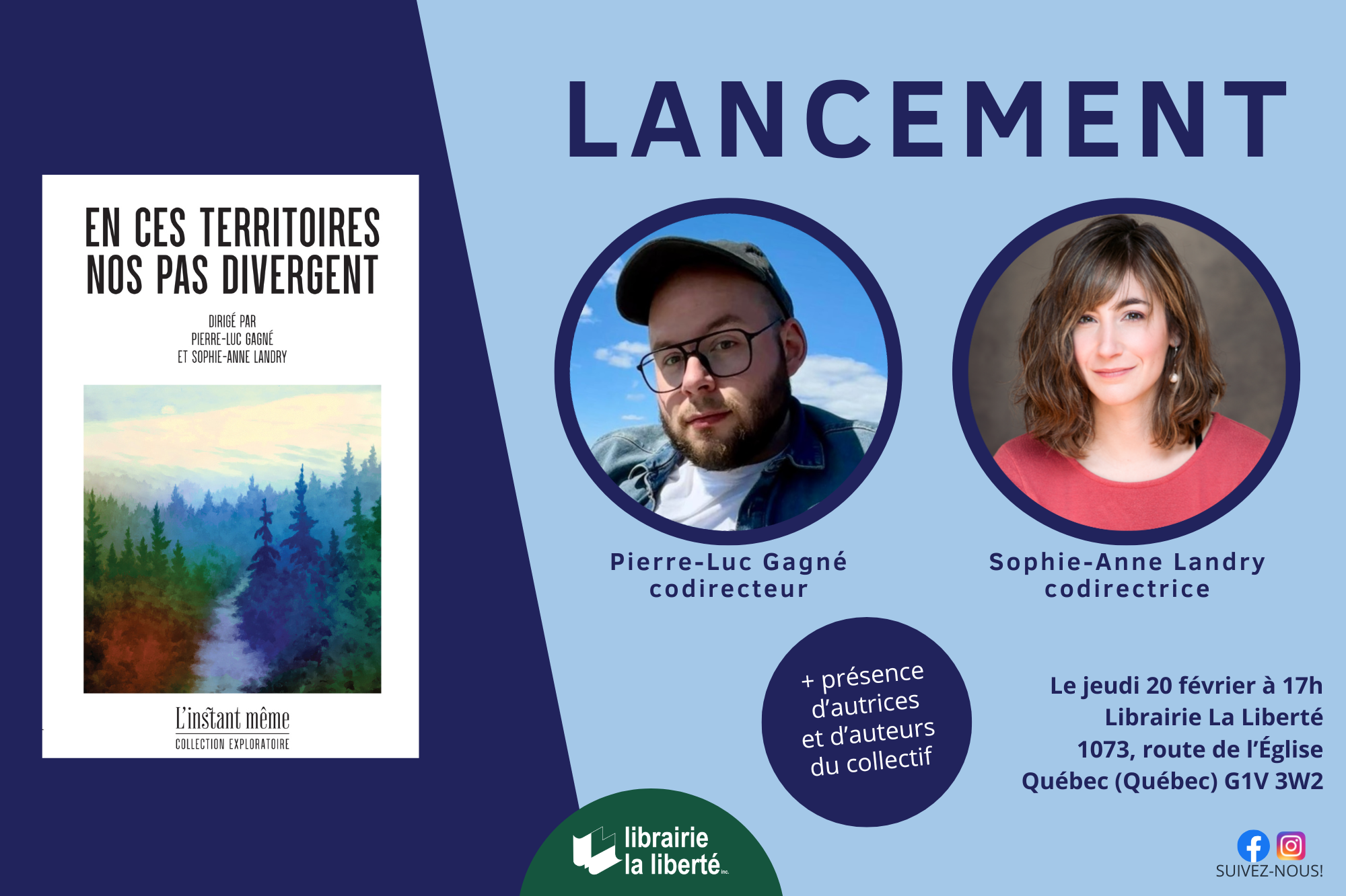 Rencontrez Pierre-Luc Gagné et Sophie-Anne Landry à l’occasion de la parution du collectif qu’ils ont codirigé, « En ces territoires, nos pas divergent » (L’instant même, 2025). Des auteurs et autrices qui ont participé à ce collectif seront présents.