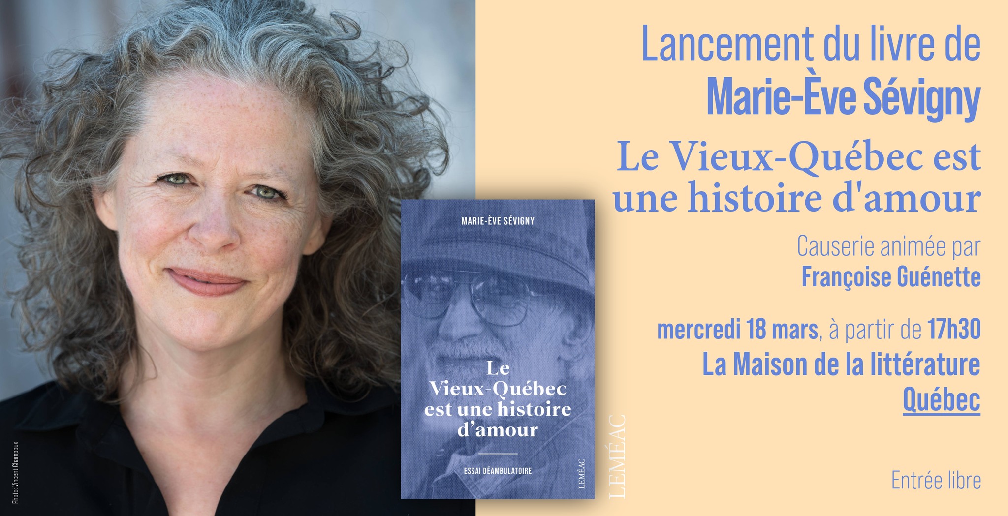 𝗠𝗮𝗿𝗶𝗲-𝗘̀𝘃𝗲 𝗦𝗲́𝘃𝗶𝗴𝗻𝘆 enseigne la littérature à l’université (UQAR, UQAM). Pendant près de quinze ans, elle a dirigé La Promenade des écrivains (2008-2022), parcourant Québec avec le grand public à travers les œuvres des écrivain.e.s ayant décrit la capitale. Spécialiste des villes littéraires, elle a obtenu avec Chrystine Brouillet le prix Marcel-Couture pour «Sur la piste de Maud Graham. Promenades et gourmandises» (Parfum d’encre, 2014). Sa thèse (UQAM, 2022), «Bipolarité d’une ville récit : la ville de Québec dans le roman québécois contemporain» (1937- 2008) est en voie de publication. Son roman «Sans terre» (Héliotrope 2016 ; Le mot et le reste, 2020) a été finaliste au prix France-Québec