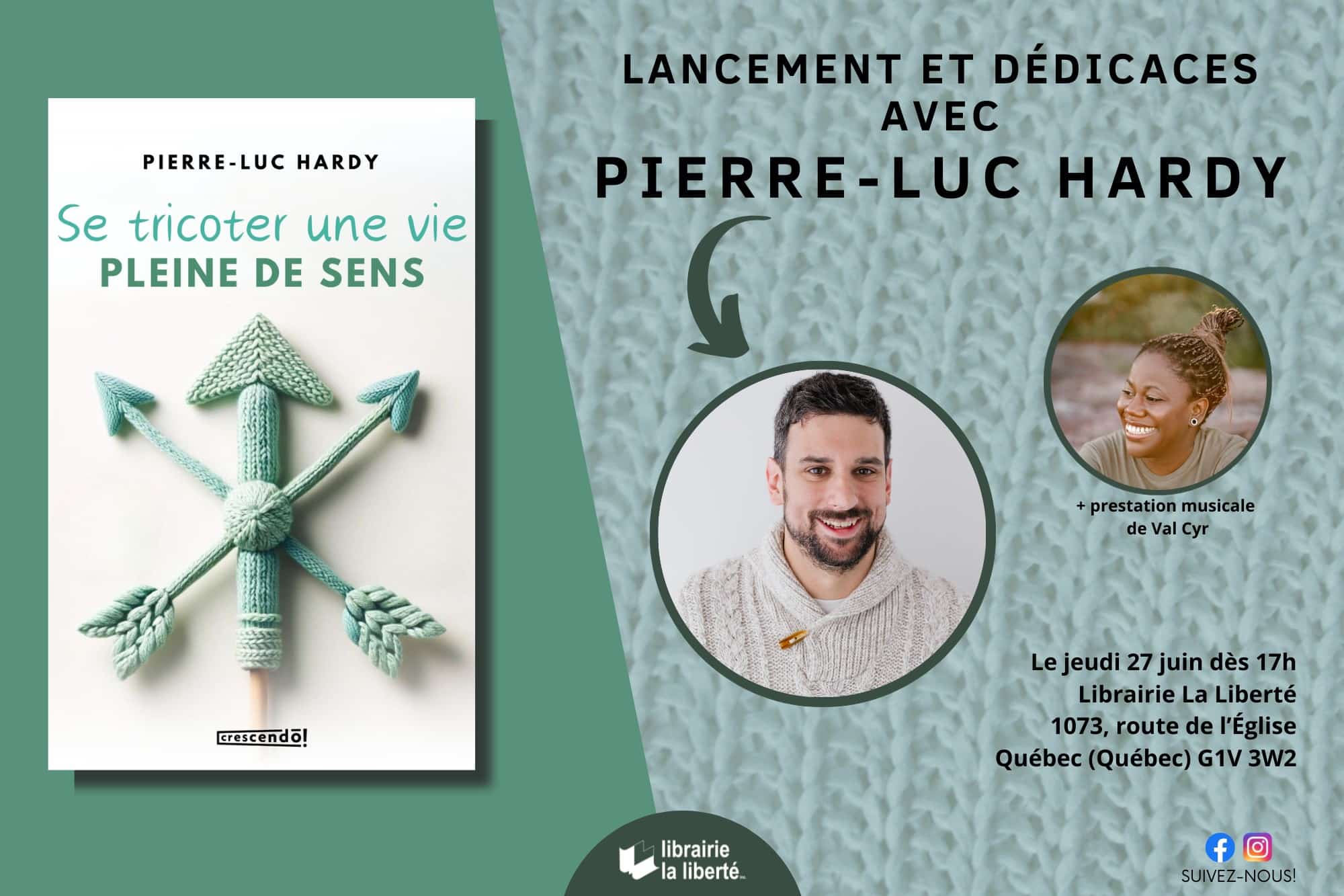 Rencontrez l’auteur Pierre-Luc Hardy à l’occasion de la parution de son plus récent livre, « Se tricoter une vie pleine de sens » (Crescendo, juin 2024).