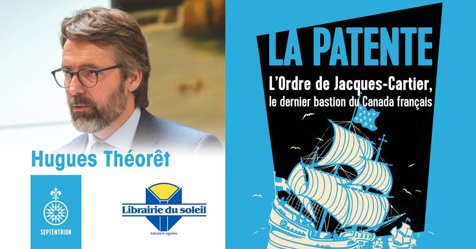 Les éditions du Septentrion et la Librairie du soleil (Ottawa) vous convient au lancement du livre « La Patente. L’Ordre de Jacques-Cartier, dernier bastion du Canada français », par Hugues Théorêt.