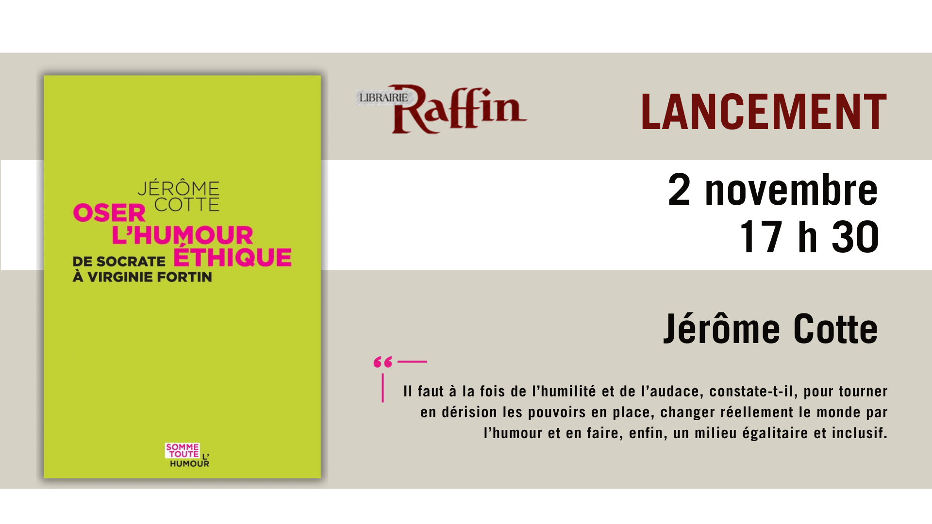 Rencontrez l’auteur Jérôme Cotte et explorez les liens entre philosophie et humour lors du lancement de Oser l’humour éthique.