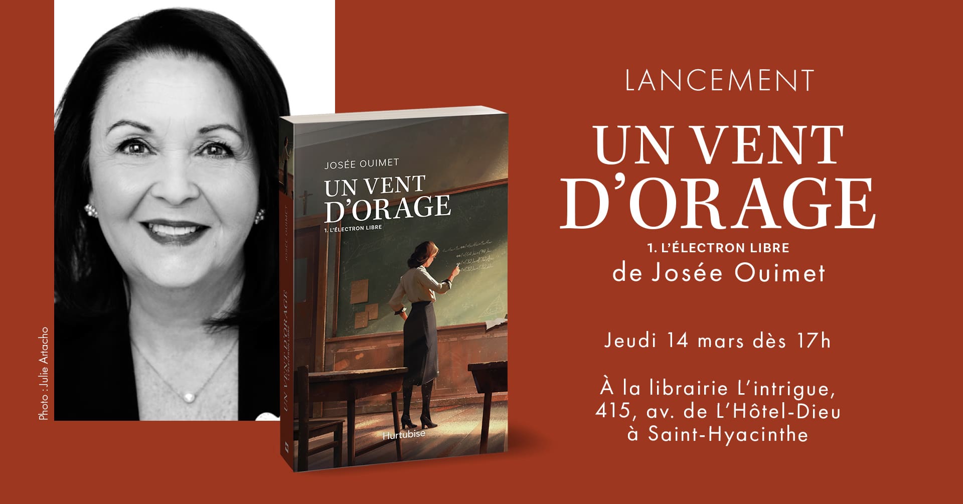 Nous sommes heureux de vous inviter au lancement de la nouvelle série historique de Josée Ouimet, UN VENT D’ORAGE, jeudi le 14 mars à partir de 17h à la librairie L’intrigue à Saint-Hyacinthe. 🥰