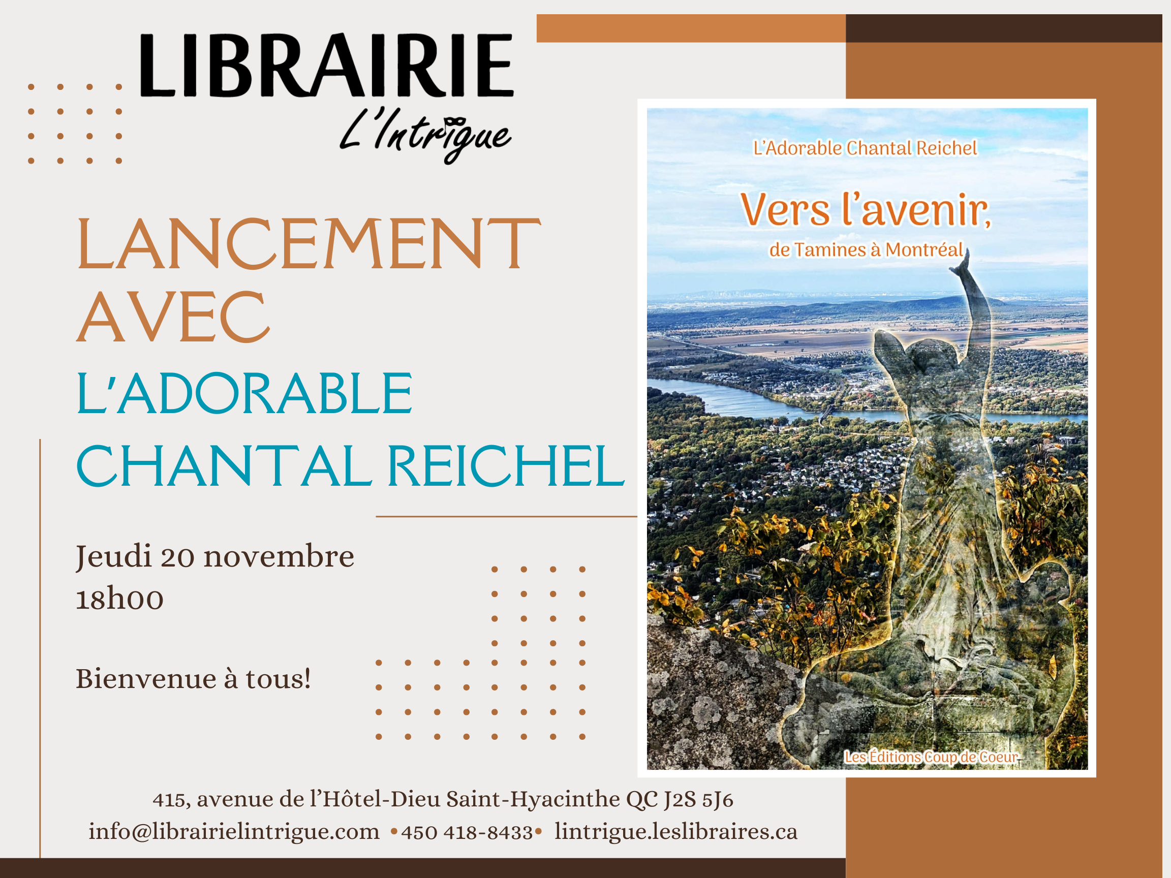 Lancement – Vers l’avenir, de Tamines à Montréal de L’Adorable Chantal Reichel
