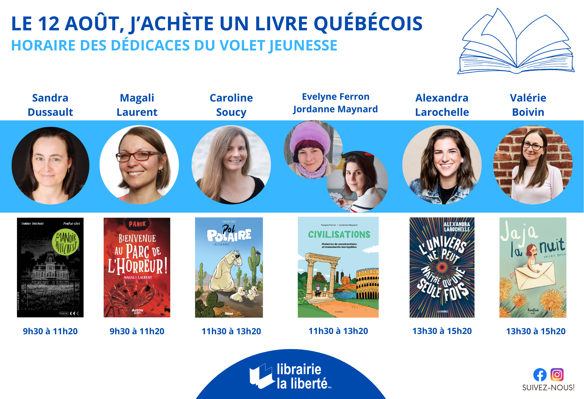 Pour l’événement « Le 12 août, j’achète un livre québécois! », la Librairie La Liberté vous propose 2 événements : un axé sur la littérature jeunesse, l’autre sur la New Romance.