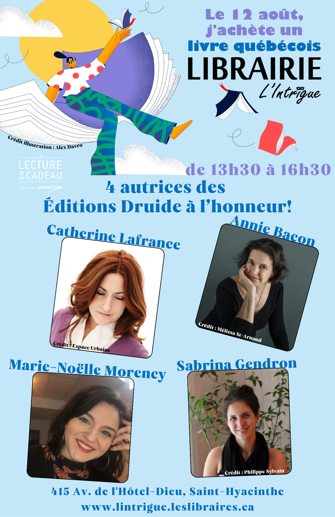 Quatre autrices des Éditions Druide seront présentes entre 13h30 et 16h30.