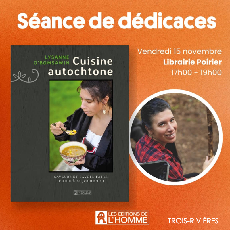 Le 15 novembre entre 17h et 19h à la succursale de Trois-Rivières, venez à la rencontre de Lysanne O’Bomsawin et dégustez un breuvage d’après une recette de son livre Cuisine autochtone.