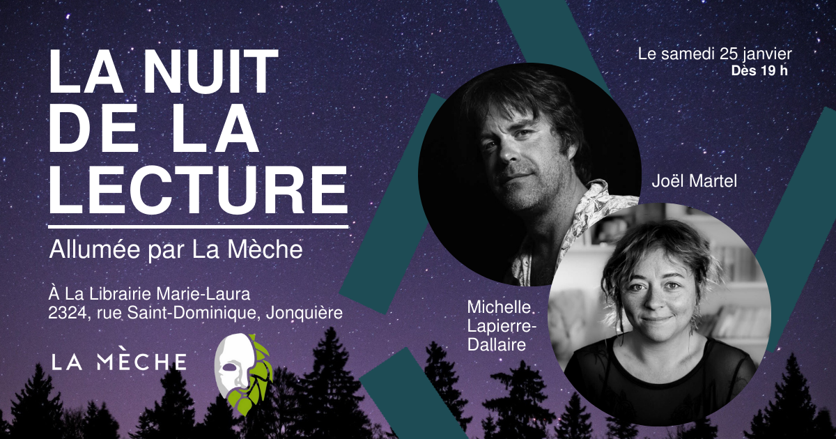 Venez assister à une soirée de lectures animée par Philippe Fortin, en compagnie de l’autrice Michelle Lapierre-Dallaire et de l’auteur Joël Martel, tous deux originaires de la région et tous deux en lice pour le prestigieux Prix des libraires de l’ALQ. 🏆