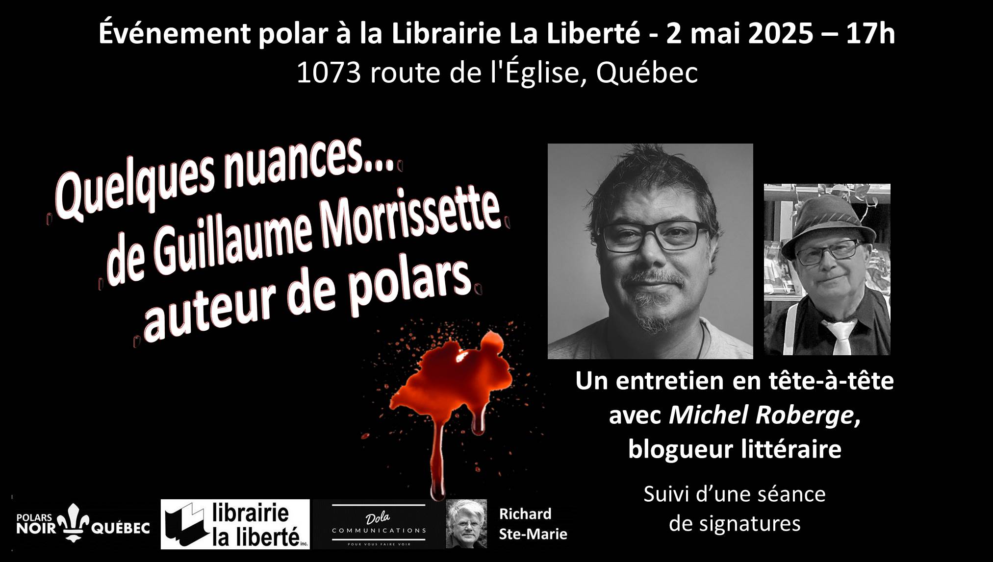 Rencontrez Guillaume Morrissette lors d’une causerie. Les échanges, animés par le blogueur Michel Roberge, seront suivis d’une séance de dédicaces.