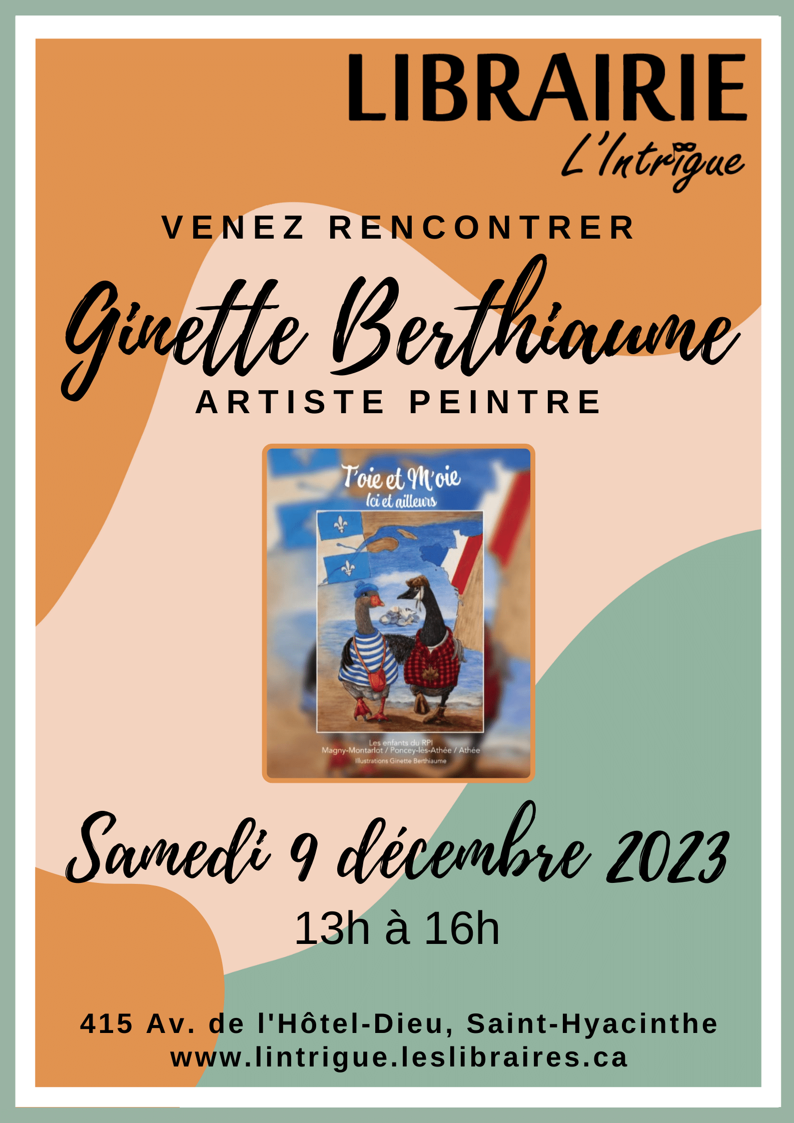 Venez rencontrer l’artiste peintre et illustratrice Ginette Berthiaume à la Librairie L’Intrigue.