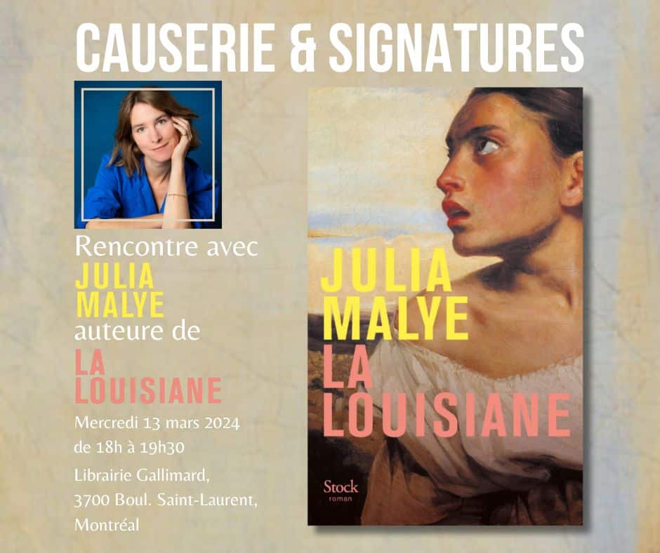 Ce que le libraire Olivier Boisvert en dit: « Roman historique d’une grande tenue littéraire, « La Louisiane » est une expérience de lecture qui s’apparente à une immersion multisensorielle complète tant la langue de Julia Malye est fine et creuse profondément le destin tragique de ces trois femmes déportées et ballotées par l’Histoire ».