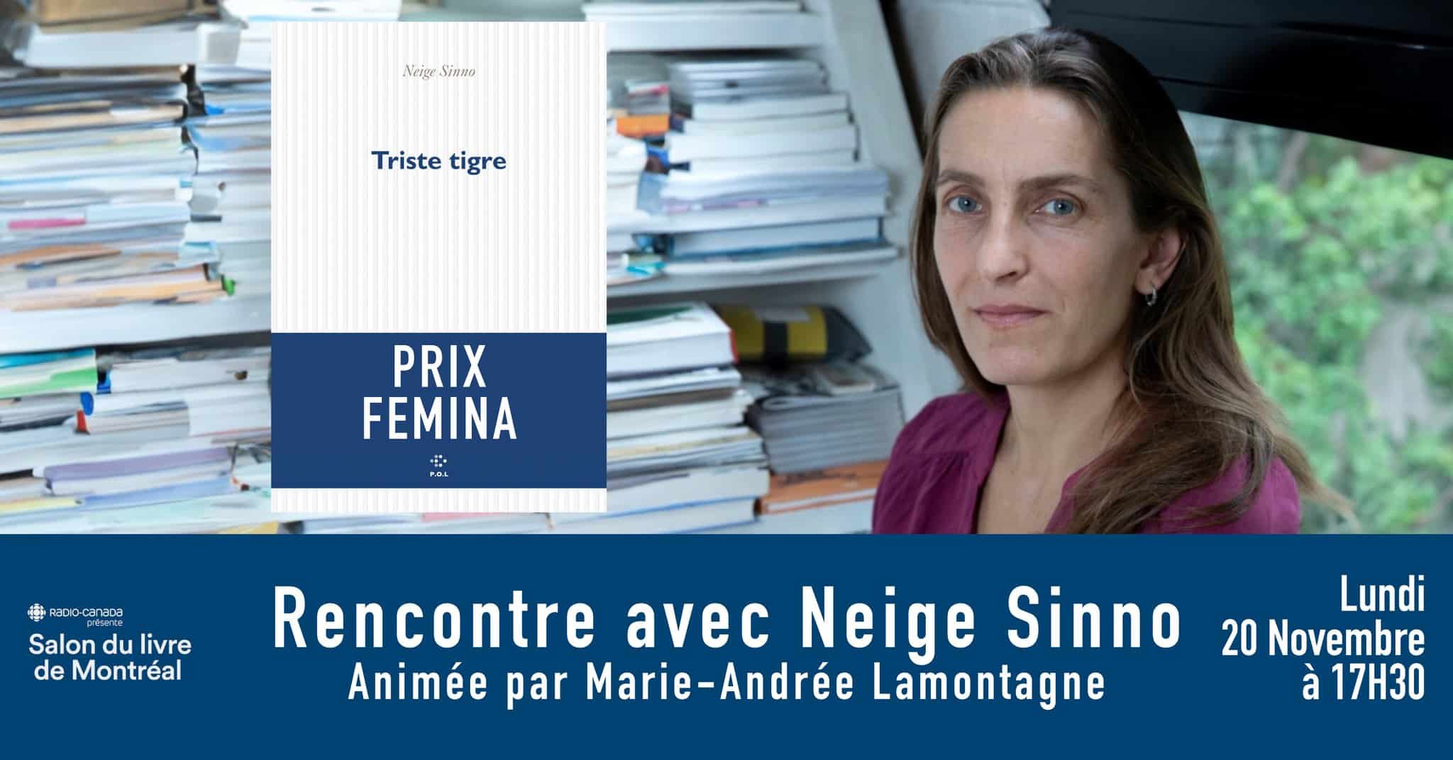 Rencontre exceptionnelle avec Neige Sinno autour de son livre « Triste Tigre » animée par Marie-Andrée Lamontagne