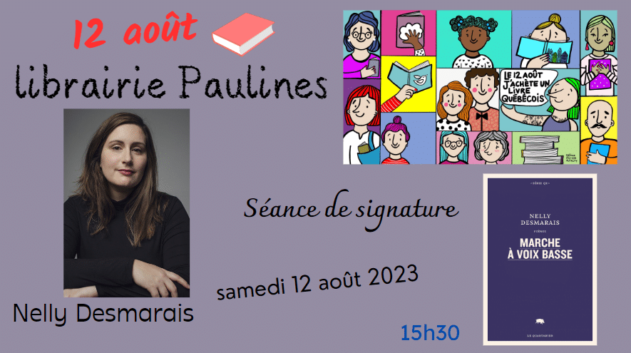 Lauréate du dernier Prix Emile-Nelligan, prestigieux prix de poésie, Nelly Desmarais signera des exemplaires de son recueil Marche à voix basse