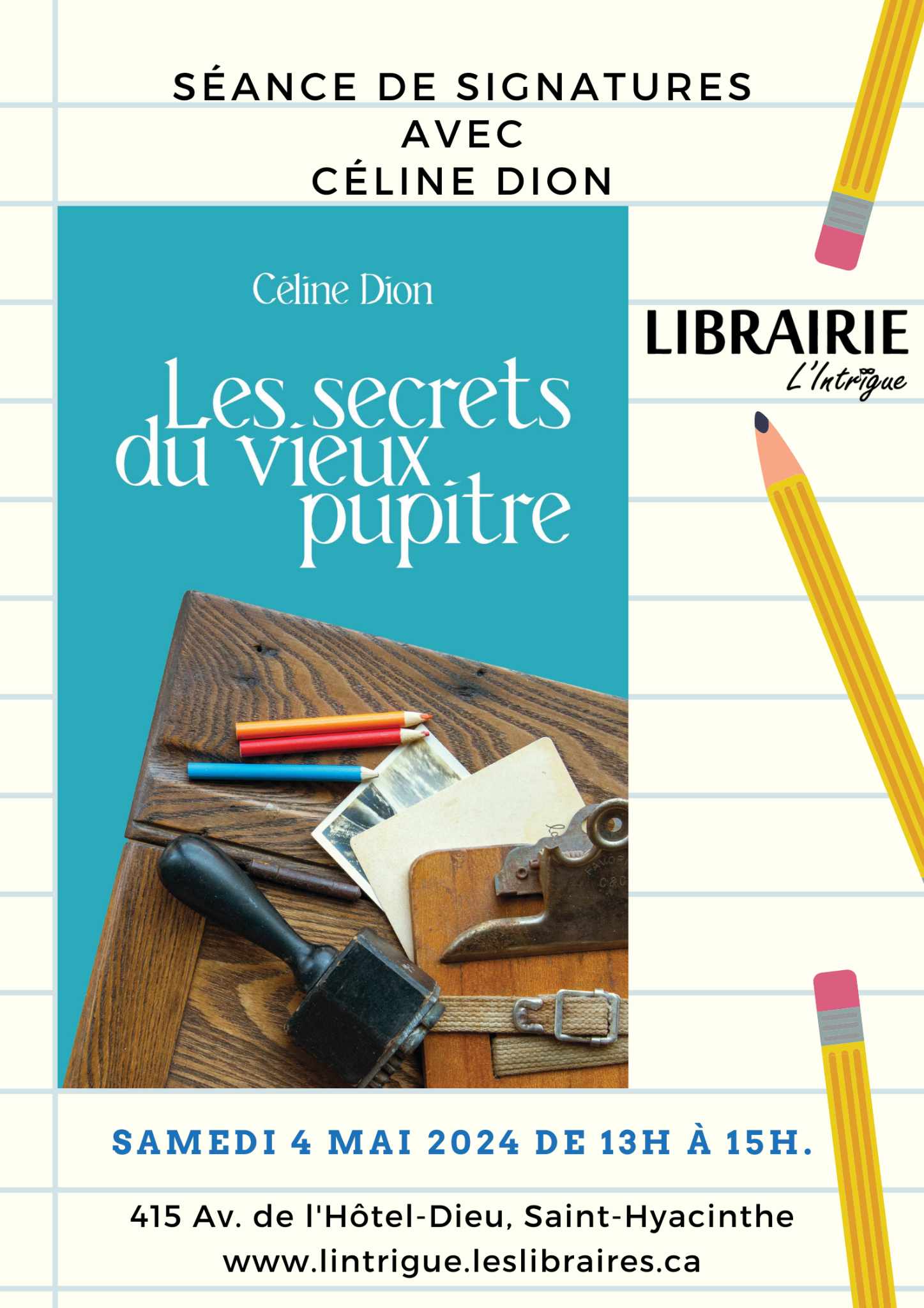 Séance de signatures avec Céline Dion auteure et conférencière, pour son roman LES SECRETS DU VIEUX PUPITRE.