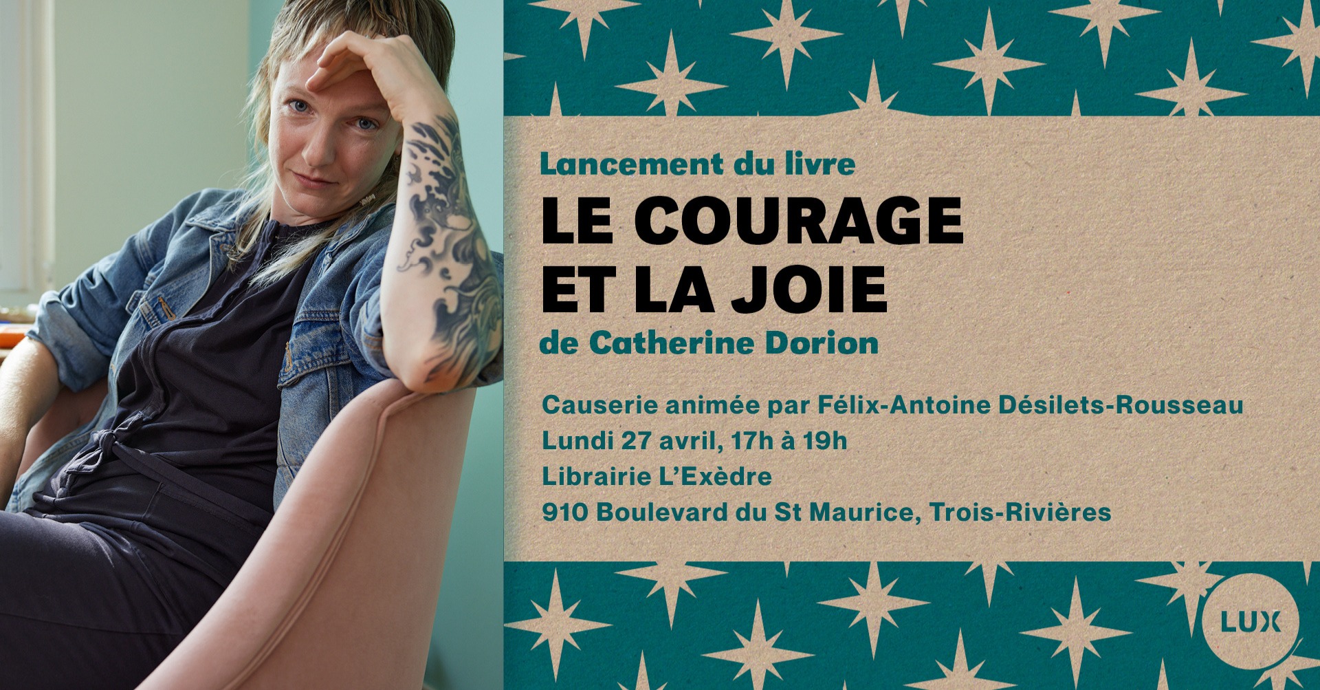Venez rencontrer Catherine Dorion le lundi 27 avril à la Librairie L'Exèdre à Trois-Rivières ! Pour l’occasion, l’autrice s’entretiendra avec Félix-Antoine Désilets-Rousseau. Rendez-vous à 17h!
