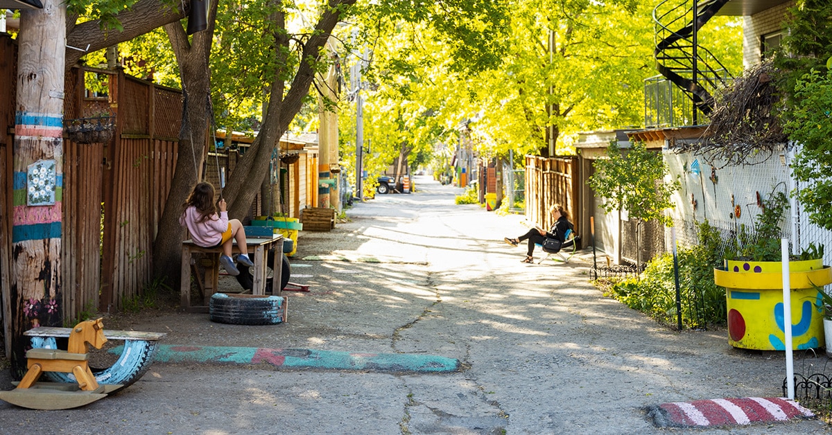 « Pour moi, les ruelles, c’est la preuve que la bienveillance existe. C’est ramener l’humanité dans ce qu’on fait. C’est prendre soin en gang. » – Léa Philippe, instigatrice du Festival des arts de ruelle